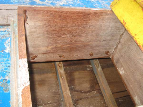 Looking down into the open hatch.