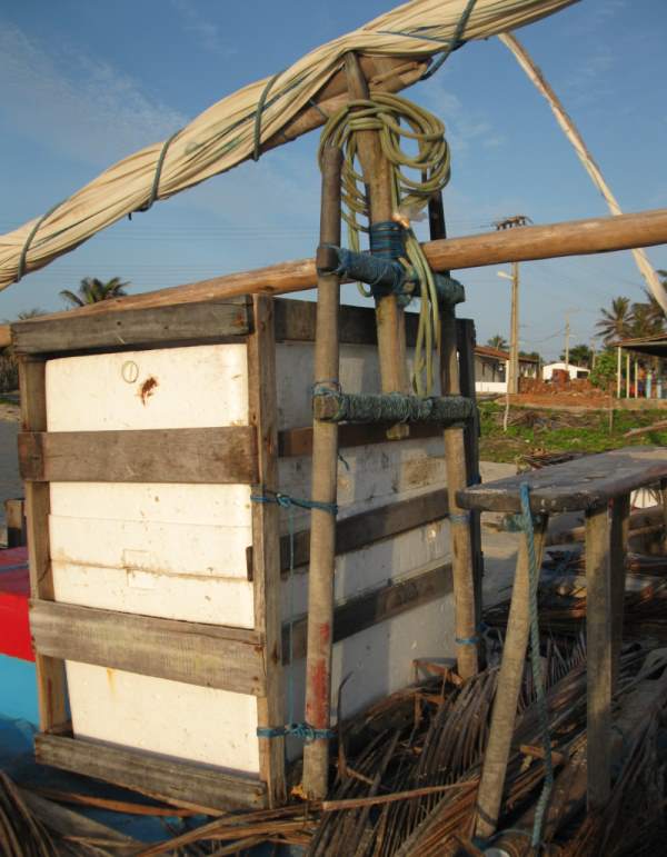 Espeque Published July 23, 2015 at 600 × 771 in Glossary This photo shows the lowered mast resting in the forquilha and the boom on the brace. This is their normal position when the jangada is anchored. The icebox frame is tied to the forward side of the espeque to keep it in place.