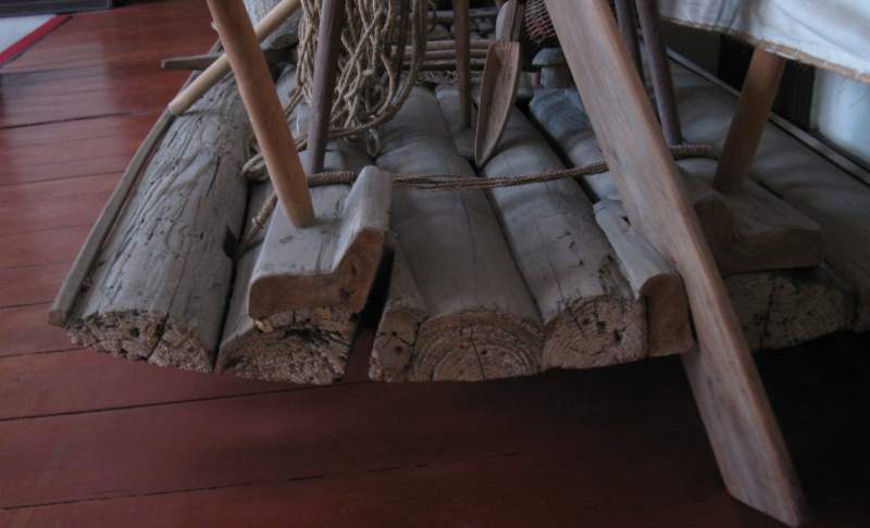 Jangada de Piúba Published July 24, 2015 at 800 × 486 in Glossary The stern (popa) of a jangada de piúba. The steering oar (remo do governo) is in the starboard transom slot, where it would be placed on a port tack. Photo taken at the Museu do Ceará.