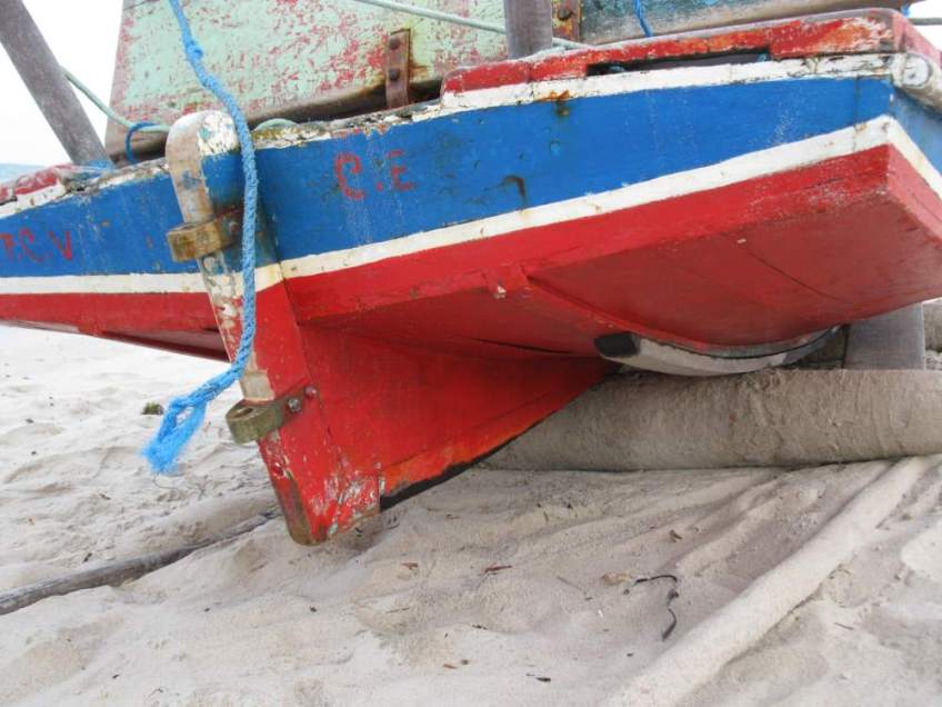 Sternpost Published August 21, 2021 at 1000 × 750 in Sternpost The jangada’s sternpost bolted to the transom and skeg. Two bronze gudgeons are used to hang the rudder.